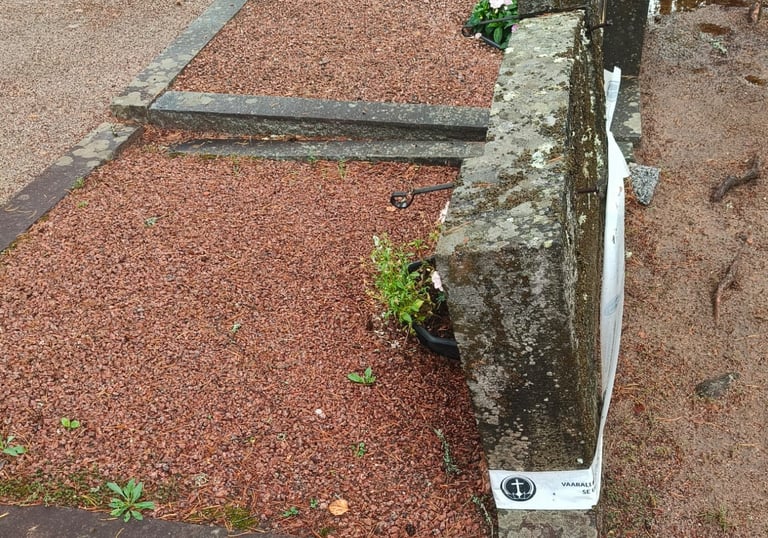 Puhdistamme hautakivet huolellisesti, jotta ne säilyvät kauniina ja kunnossa.